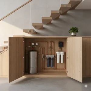 در مرحله طراحی، جنس مخزن آب زیر پله نیز مشخص میشود که معمولاً پلیاتیلن بهداشتی برای مصارف خانگی بهترین گزینه است. این جنس علاوه بر وزن سبک، مقاومت بالایی در برابر رطوبت و خوردگی دارد و کیفیت آب ذخیرهشده را حفظ میکند.